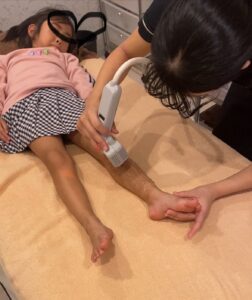 先に子供さんの膝下脱毛♡いつも施術の様子が気になるようで、めっちゃ覗き込まれています🤣可愛いすぎます🫢💕撮影はお母様♡