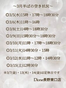✳︎3月半ばの空き状況✳︎