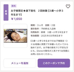 お子様限定★鼻下脱毛2回体験