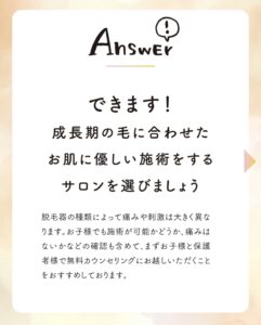 脱毛サロンのエステティシャンがお答えします。「思い切って子供の頃から脱毛してあげたい!」