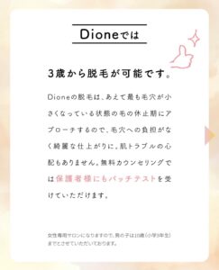 #dione #脱毛 #脱毛サロン #脱毛器 #Dione西船橋駅前店#ディオーネ#毛周期#エステ脱毛#光脱毛#3歳から脱毛OK#将来の為の美肌準備#毛を無くすだけの脱毛は卒業#脱毛しながら美肌ケア#無料カウンセリング#ハイパースキン脱毛#敏感肌脱毛#アトピー肌脱毛#ニキビ肌脱毛#痛くない脱毛#全身脱毛#vio脱毛#脇脱毛#顔脱毛#子供脱毛#キッズ脱毛#親子脱毛#大人脱毛#介護脱毛#パーツ脱毛#フォト美顔#コラーゲン生成#黒ずみ改善#たまご肌#水光肌#毛穴レス#毛穴洗浄#毛穴詰まり#毛穴たるみ#たるみ#くすみ#シミ#クマ#乾燥#肌力アップ#フェイシャルエステ#FAITH#faith#faith正規取扱店#ラメラモード#ホームケアアドバイス#ポリシー化粧品#おまたオイル#デリケートゾーンケア#フェムケア#Refa#refa#refa正規取扱店#西船橋#船橋市#市川市#浦安市#江戸川区#西船橋駅徒歩3分#京成西船徒歩5分#駅近#下総中山駅#本八幡駅#市川駅#小岩駅#東海神駅#飯山満駅#北習志野駅#船橋日大前駅#八千代緑が丘駅#原木中山駅#妙典駅#行徳駅#浦安駅#葛西駅#京成船橋駅#船橋競馬場駅#海神駅#谷津駅#京成津田沼駅#ペリエ西船橋#船橋東武百貨店#シャポー船橋#ららぽーとTOKYO-BAY