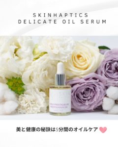 100%天然由来成分 さらりと軽いのに、しっかり保湿 オーガニック植物オイルを厳選配合 心がゆるむ、やさしい香り こんな方におすすめですデリケートゾーンの乾燥やかゆみが気になる方 黒ずみ予防をしたい方 脱毛後のお肌をやさしくケアしたい方 生理前後に違和感を感じやすい方 忙しくても「自分をいたわるケア」を取り入れたい方 デリケートゾーンのお悩みは、とても個人的で繊細。だからこそ、「どんなケアを選ぶか」もとても大切です。 スキンハプティクスのオイルセラムは、やさしさ・安全性・使い心地すべてのバランスが良く、 まずは、夜のスキンケアの仕上げにワンプッシュ。