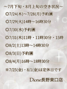 ✳︎7月下旬〜8月上旬の空き状況✳︎