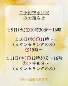 空き状況のお知らせ【Dione西船橋駅前店】