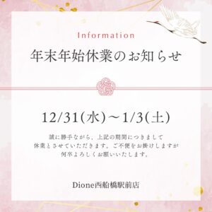 【2025年12月31日(水)〜2026年1月3日(土)まで】年末年始休業とさせていただきます。