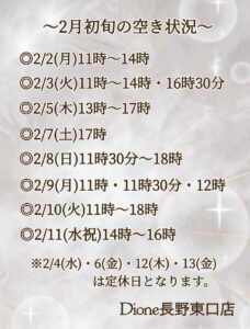 2月初旬の空き状況です🈳