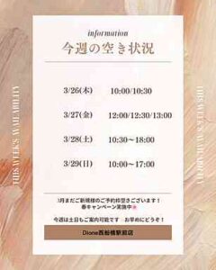 今週のご予約空き状況をお知らせいたします✨