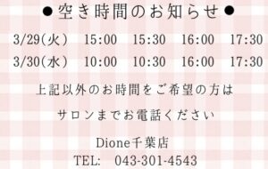 空き時間のお知らせです🤍 3/29(火) 15:00 15:30 16:00 17:30 3/30(水) 10:00 10:30 16:00 17:30 午前中、最終受付時間の空きございますὤ […]