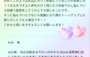 美肌脱毛専門サロン Dione長野東口店です❣️ お客様からのお声紹介です⭐️ いつもとても嬉しいご感想 本当にありがとうございます🙇‍ […]