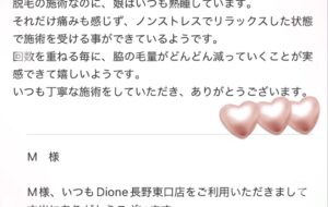 美肌脱毛専門サロン Dione長野東口店です❣️ お客様からのお声紹介です🌟 いつもとても嬉しいご感想 本当にありがとうございます🙇ɤ […]