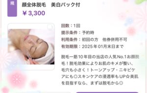 美肌脱毛専門サロン Dione長野東口店です❣️ 〜当店人気No.1★クーポン〜 【うるツヤお顔全体脱毛 美白パック付き ¥3,300】 Dioneのお顔脱毛は ダントツで1番人気コースです& […]