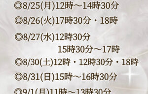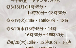✳︎お盆・お盆明けの空き状況✳︎ お盆明けより河野復帰いたしますm(_ _)m