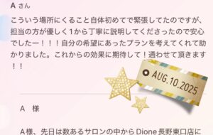 美肌脱毛専門サロン Dione長野東口店です❣️ お客様からのお声紹介です⭐️ いつもとても嬉しいご感想 本当にありがとうございます🙇‍ […]
