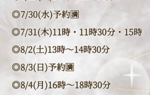 ✳︎7月下旬〜8月上旬の空き状況✳︎
