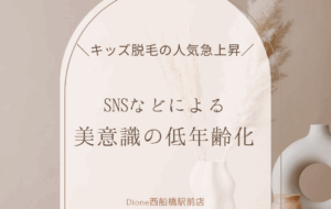 こんにちは♪ Dione西船橋駅前店です(^^ 本日は美意識の低年齢化について!! 今はスマホを開けば、SNSを通じて簡単に美容情報にアクセスすることができます。 自分の好きなインフルエンサーが脱毛体験の投稿していたり、 […]