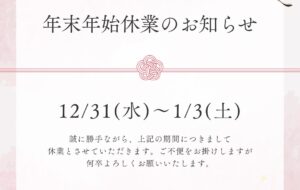 いつもDione西船橋駅前店をご利用いただき、 誠にありがとうございます🤍 今年もたくさんの素敵な出会いに恵まれ、 心より感謝の気持ちでいっぱいです✨ 誠に勝手な […]