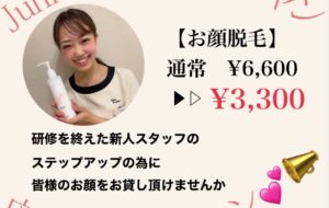 ジュニアエステティシャン応援キャンペーン♪【痛くない脱毛】
