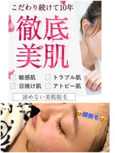 当店の脱毛、脱毛しながら美肌効果も✨是非、お顔脱毛体験してみて下さい。