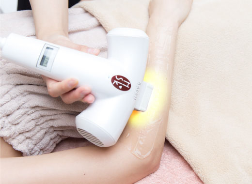 ハイパースキン法は熱を使わないので冷たいジェルを使う必要がなく、快適に施術を始められます。ご希望部分へ丁寧に美肌光(フォト)が含まれる光を照射していきます。お手入れ部分のギリギリまで、レーザー脱毛では出来ない部分も、脱毛可能です。