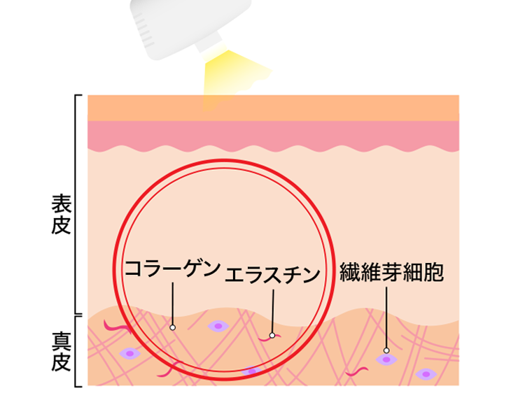 ハイパースキン方の光は肌のコラーゲン生成能力を高める効果があり、ハリ・ツヤをUPさせてくれます。また、細胞の活性化を助ける働きもあるので、色素沈着、くすみを軽減したり、毛穴やシワ、たるみを目立たなくします。