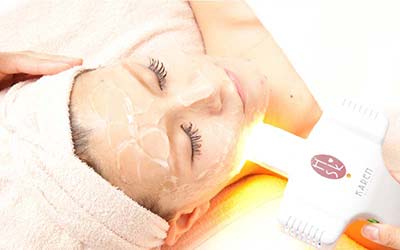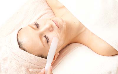 光の浸透率を高めるため・お肌を保護するためにお顔全体にジェルを塗布。