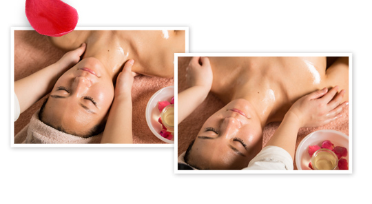 頭のツボや経絡に沿ったトリートメントで、お顔のリフトアップへと導きます。